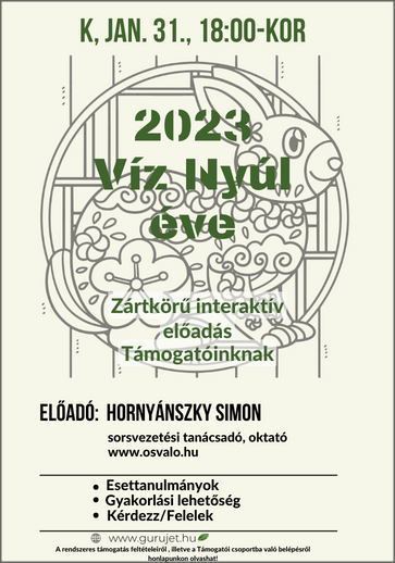 ’’Az általános és egyszerűbb elemi hatások feltérképezését követően e zártkörű előadáson kifejtem a 2023 癸卯 Gui-Mao napévének személyesebb vonatkozásait a korábbi előadásokban már ismertetett rendszerszemléletű elvek mentén. ’’